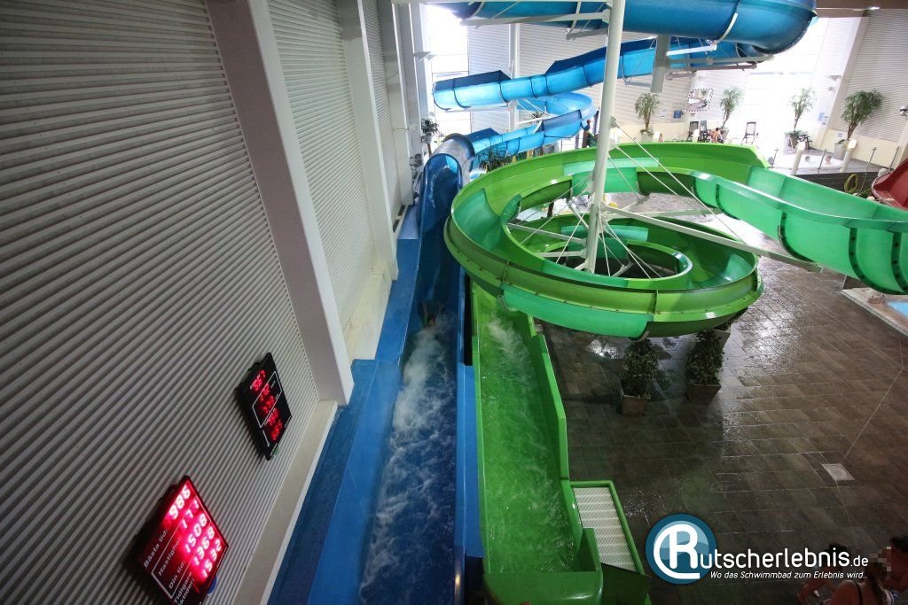 Die grüne Riesenrutsche startet von der Galerie im Erlebnisbad aus vier Metern Höhe. Auch hier geht es flott durch die Kurven, ehe man nach 39 Metern im Flachwasserauslauf landet. Die Rutsche stammt – wie die beiden anderen auch – vom schwedischen Rutschenhersteller Kanab Hydrosport und wurde 2005 eröffnet.