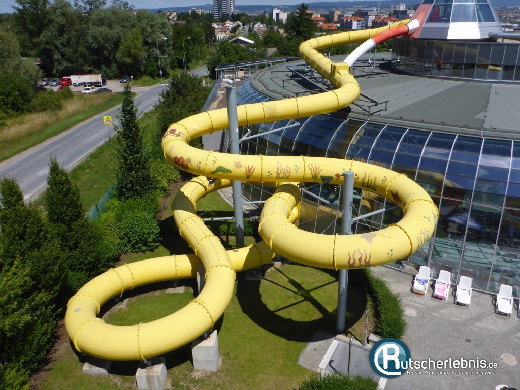 Etwa drei Autostunden östlich der tschechischen Hauptstadt Prag befindet sich Olomouc (deutsch: Olmütz). Die Universitätsstadt ist ein starkes Handels- und Kulturzentrum in Mähren und ist auch dank des historischen Stadtkerns als Ausflugsziel beliebt. Rutschenfans sollten sich die sechstgrößte Stadt Tschechiens ebenfalls auf der Landkarte markieren, denn im Aquapark Olomouc gibt es reichlich Wasser- und Rutschenspaß für die ganze Familie. Wer nicht gerade in der Nähe Urlaub macht und eine weitere Anreise in Kauf nimmt sollte das Schwimmbad im Sommer besuchen, im Freibad gibt es nämlich zwei weitere Riesenrutschen.