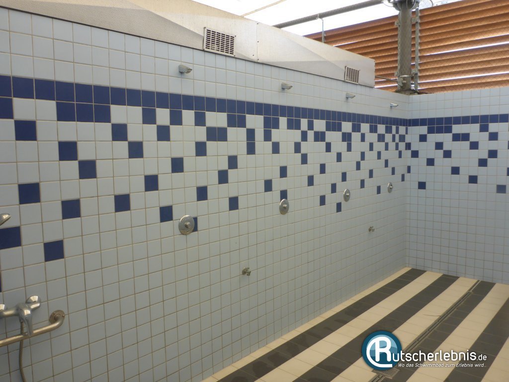 Die Duschen sind angenehm hell und waren bei unserem Besuch sehr sauber und gepflegt. An zahlreichen offenen Duschplätzen kann man der Körperpflege vor und nach dem Badbesuch nachkommen. Leider gibt es keine Ablageflächen für Shampoo und Duschgel. Lediglich kleine Regalfächer und Handtuchhaken hinter der Eingangstür stehen zur Verfügung.