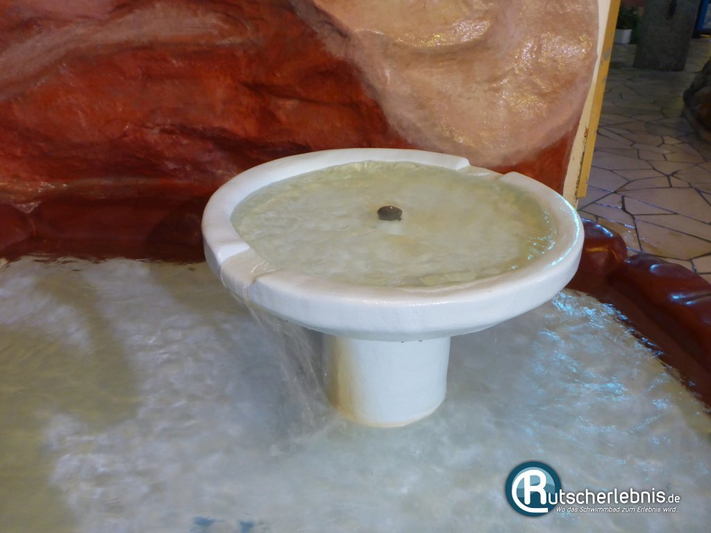 Hinter dem Wellenbecken befindet sich ein kleines Kinderbecken mit einer bunten, wasserspeienden Figur und einer kleinen Rutsche. Die Thematisierung am Becken ist gewöhnungsbedürftig und erinnert an urzeitliche Höhlenmalereien. Zu diesem Eindruck trägt auch die durchaus gelungene Felsengestaltung bei.