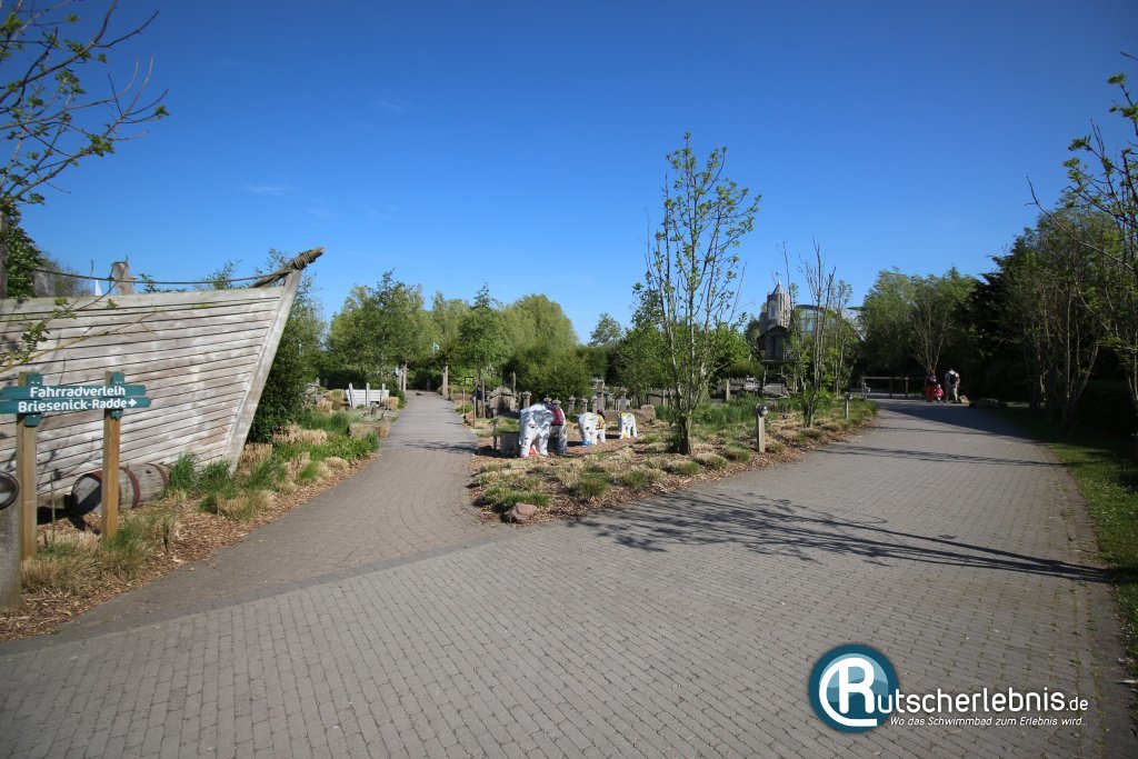 Der Lazy River endet dort, wo die eigentliche Rutsche beginnt. Mit Schwung geht es die kurvige Strecke hinab, an deren Ende ein Flachwasser-Auslauf wartet. Hier sollte man sich gut im Reifen halten, denn man kommt in leichter Schräglage an. Mit etwas Pech haut es einen aus dem Reifen.