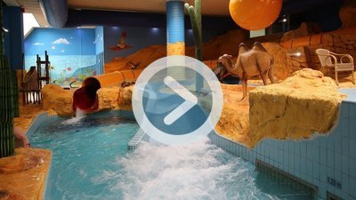 Ein Erlebnisbecken verfügt über einen Strömungskanal, Liegebänke und Blubberdrüsen.