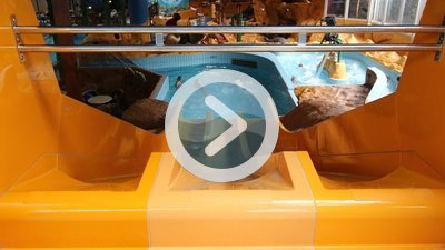 Eine Etage höher ist der Erlebnisbereich unter einem pyramidenförmigen Dach mit vielen Fenstern. Gestaltet ist der Erlebnisbereich im exotischen Stil mit verschiedenen Tierfiguren und Felsen.